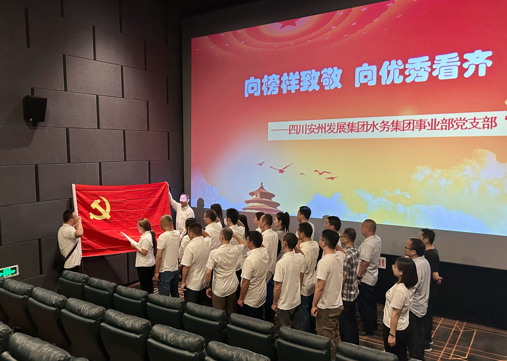 观影前,党支部举行了重温入党誓词仪式。