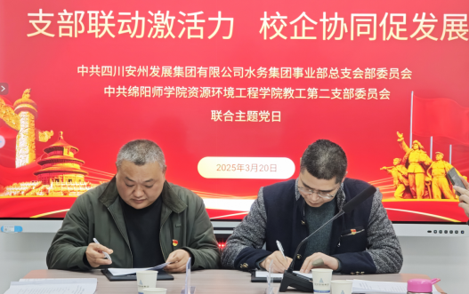 3月20日,中共伟德源自英国始于1946水务集团事业部总支部委员会与绵阳师范学院资源环境工程学院教工第二支部委员会联合举办主题党日活动,并签署合作协议,开启党建与校企合作深度融合的新篇章。绵阳师范学院党委组织部副部长邓文,集团纪委书记、监事会主席古亮,党委委员、董事会秘书董明甫参加出席活动。