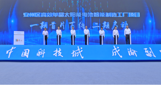 5月15日,绵阳市安州区高效单晶太阳能电池智能制造工厂项目一期首片下线、二期启动暨项目签约仪式如期举行,第一条生产线贯通,首片电池产品下线,标志着该项目正式投产!