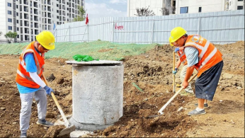 在项目施工现场,挖掘机、压路机等各种大型机械设备轰鸣声此起彼伏,呈现一派热火朝天的建设场景。工人们则忙着进行53号污水主检查井人工回填,像这样的污水主检查井,雨水检查井以及支井等共120个,目前已回填完成110余个,即将完工。