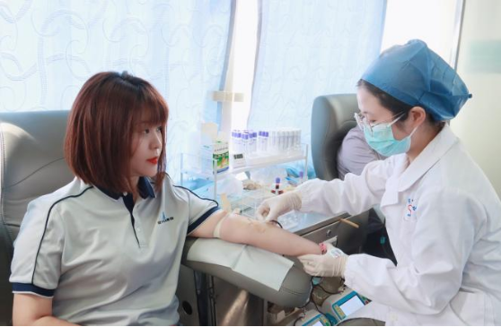 捐一份血液,传递一份爱心。填表登记、血压测量、血样检验、排队献血……,活动现场,参加献血的员工严格按照献血程序有条不紊地开展献血活动。无偿献血车内,一袋袋血液传递着血浓于水的友爱之心,一张张义无反顾的笑脸展现出乐于奉献的公益情怀,经过血液检样符合献血标准的人员纷纷挽起袖子,献出自己的爱心。