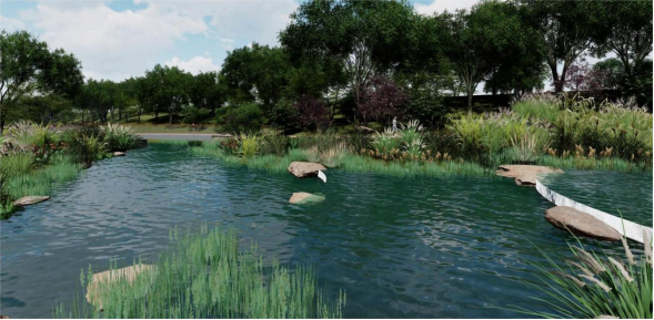 项目建成后,将通过源头减排、过程控制、系统治理的方式,采取屋顶绿化、透水铺装、下凹式绿地、雨水收集利用等措施,使建筑与小区、道路与广场、公园与绿地等具备对雨水的吸纳、蓄滞和缓释作用,有效控制雨水径流,涵养地下水,净化水质,改善微气候,实现“小雨不积水、大雨不内涝、水体不黑臭、热岛有缓解”。同时,该项目作为重要的民生工程,建成后将形成安昌河东岸生态修复带、运动休闲区、绵安文化体验区、浪漫法国休闲区、湿地拓展区的“一带四区”格局,对安州区在海绵城市建设、生态保护、可持续发展等方面起到关键的示范性作用,也为市民文体休闲娱乐提供更多好去处。