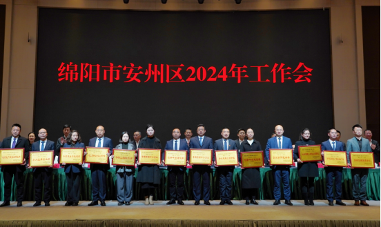 2月29日,安州区2024年工作会召开。会议表扬了2023年度经济社会发展工作先进集体,并进行了颁奖,集团公司荣获20余项区级表扬。