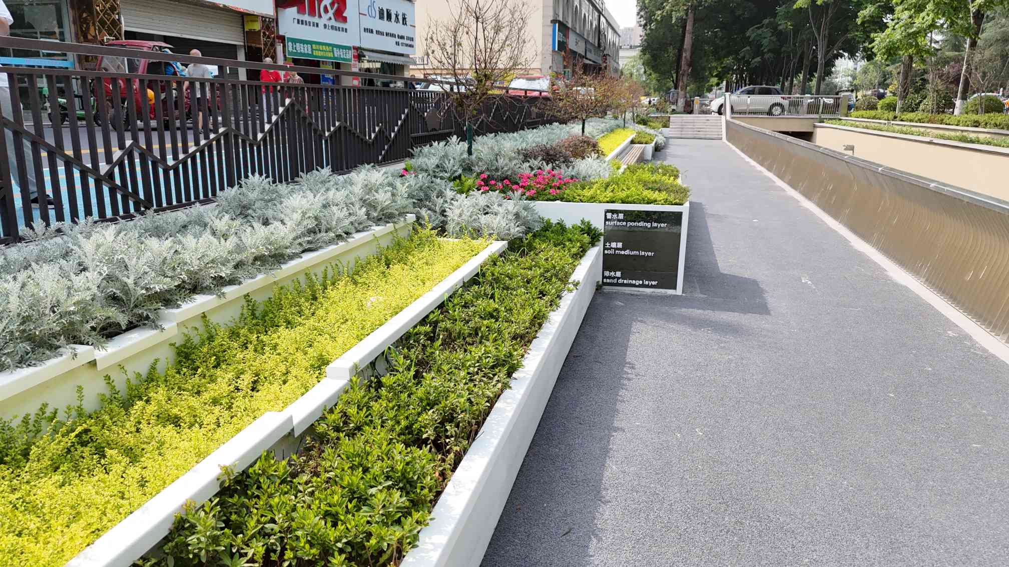 透水铺装及阶梯式雨水花箱