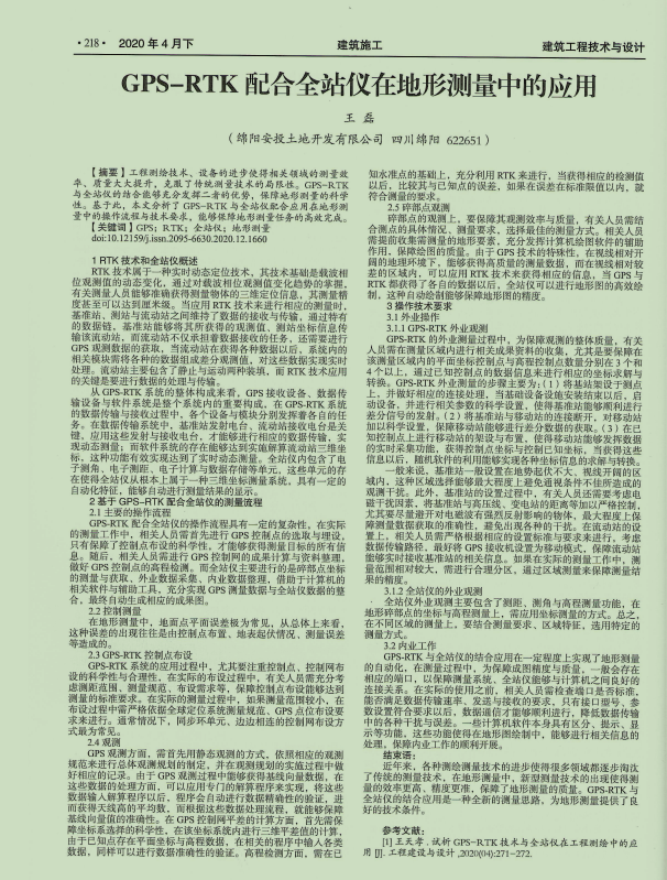 在工作中,王磊重视新技术新工艺的探索、推广和应用,为继续开展好测绘工作,提高专业能力和服务水平,他不断加强学习,总结经验,他撰写的“GPS-RTK配合全站仪在地形测量中的应用”于2020年4月成功在《建筑工程技术与设计》中发表。