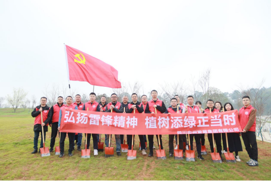 身着志愿红,播种文明绿。活动中,集团党委书记、董事长陈宁带领集团高中层管理人员及党员志愿者共30余人开展义务植树志愿服务活动,大家两两成组,铲土、挖坑、扶树、培土、浇水、踩实,用实际行动践行雷锋精神,弘扬时代新风,现场呈现出一片热火朝天的景象。