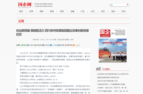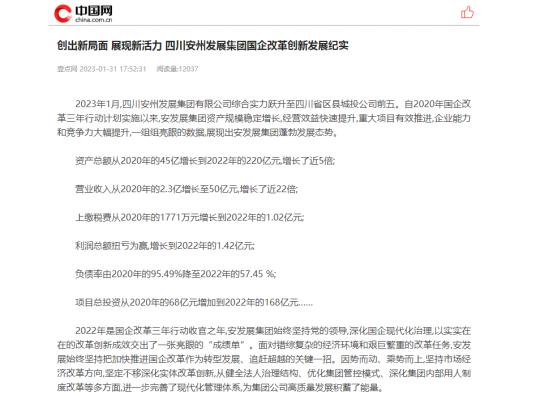 近期,《中国网》《国企网》以《创出新局面 展现新活力 四川伟德源自英国始于1946集团国企改革创新发展纪实》为题,报道了国企改革三年行动以来,集团公司改革创新发展成果,并突破10000+的阅读量。