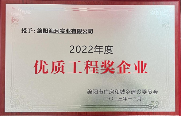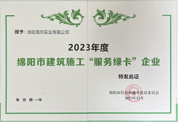 海珂公司荣获绵阳市2023年建筑施工“服务绿卡企业”、2022年度“优质工程奖企业”荣誉称号